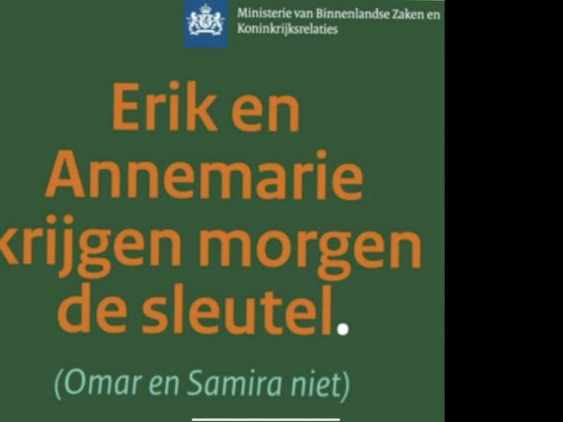 Niets masochistisch is mij vreemd, dus gisterenavond bij het zappen even blijven hangen bij het kletsprogramma OP1. Louter om me, zo aan het eind van de dag, een paar minuten te verbazen over de treurige kwaliteit van Nederlandse praatprogramma’s, vrees ik. De ‘tafel van dienst', en met name Yoeri Albrecht, directeur van de Balie, had zich geërgerd aan de campagne van de rijksoverheid om discriminatie op de woningmarkt tegen te gaan. In het kader van die campagne wordt er namelijk door het ministerie van Binnenlandse Zaken een poster verspreid met het opschrift: